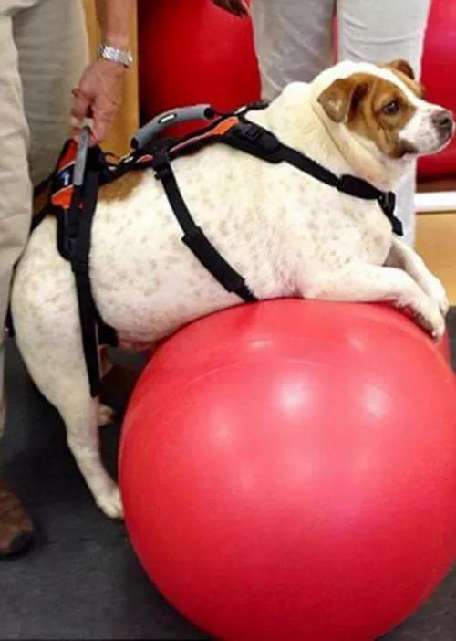 狗狗救助組織的獸醫(yī)和訓(xùn)練員們在救助了珍珠后,開始幫助它減肥,他們?yōu)樗贫藝?yán)格的飲食計劃,并且運(yùn)用了水下跑步機(jī)等鍛煉器材。