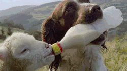 這只小狗正在幫助主人喂養小羊羔。